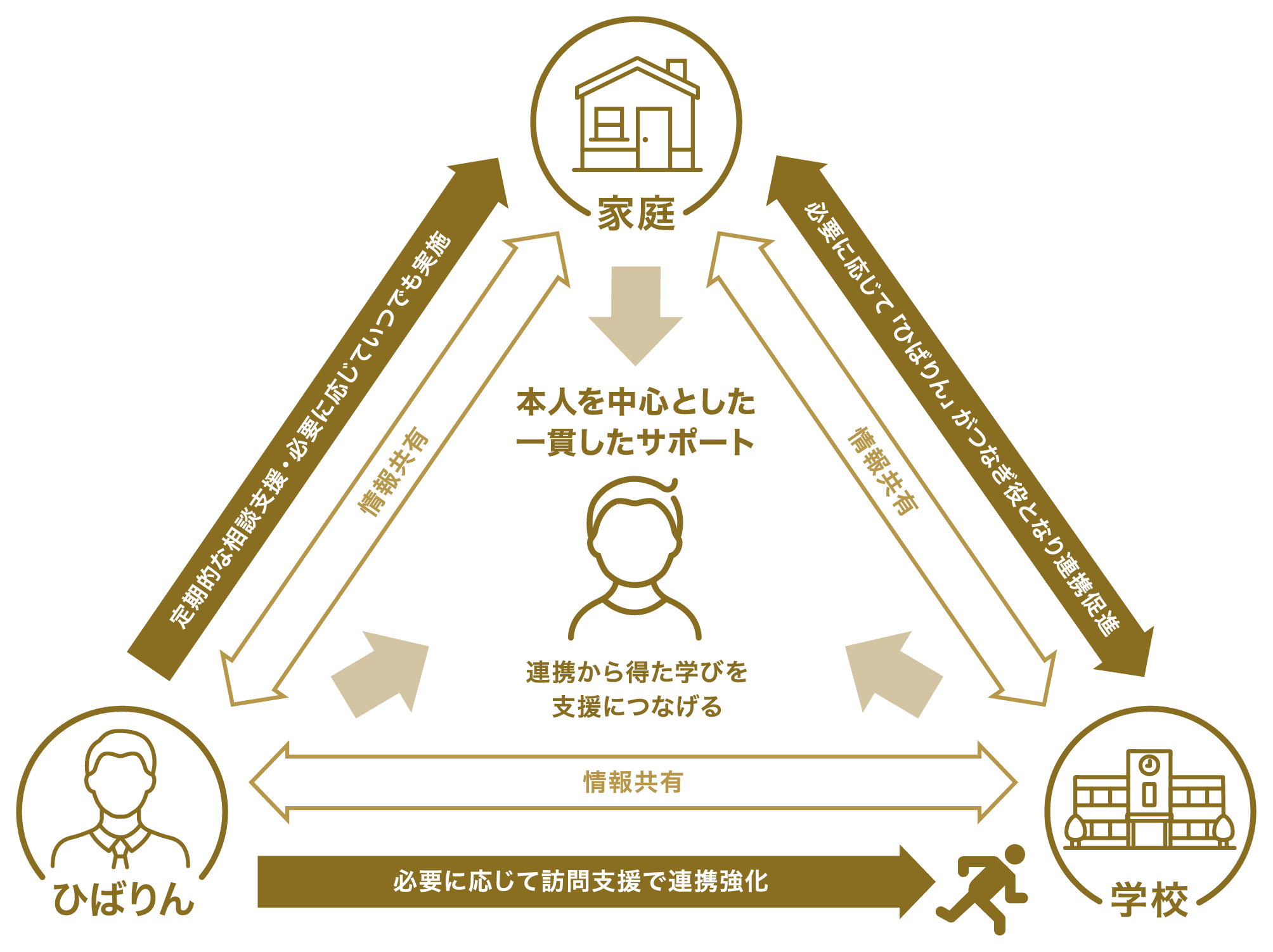 - ひばりんでの課題も家庭と学校に共有することで全体として一貫したサポートができる。