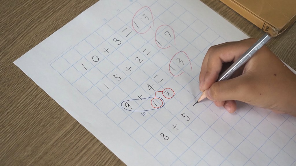 学習への抵抗感が強い子には、白紙に1問ずつ問題を書き出して取り組みます。理解の程度を見取り、少しずつ難しい問題を解決することで「できた」という達成感にもつながります。