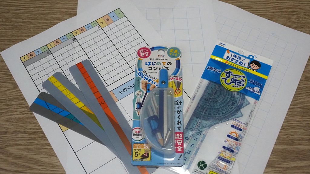 (例)まわしやすいコンパス、すべらない定規、リーディングトラッカー、マス目のある計算用紙