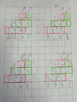4.繰り上げた数字を最後に足したり、忘れたりしてしまう。